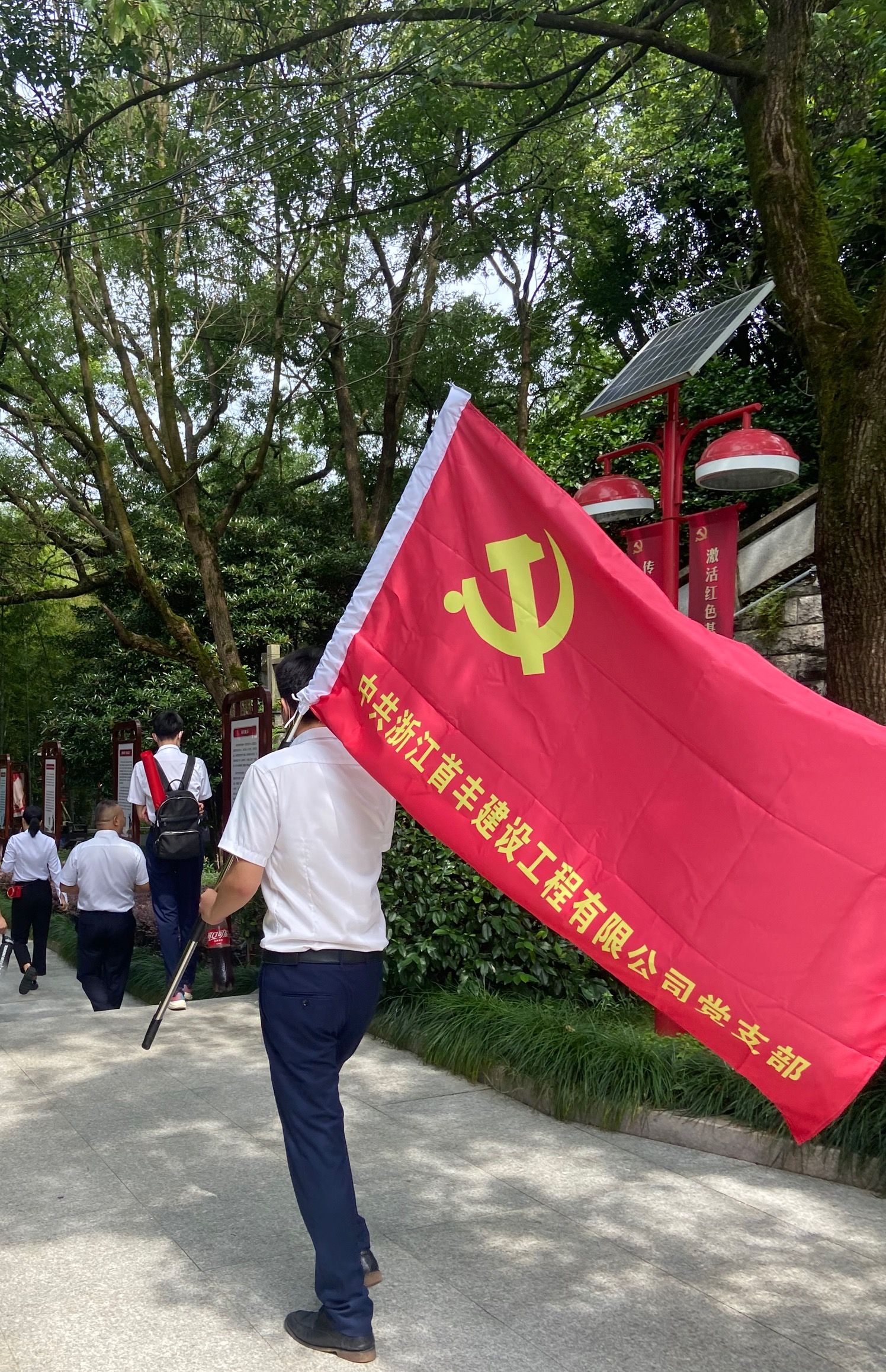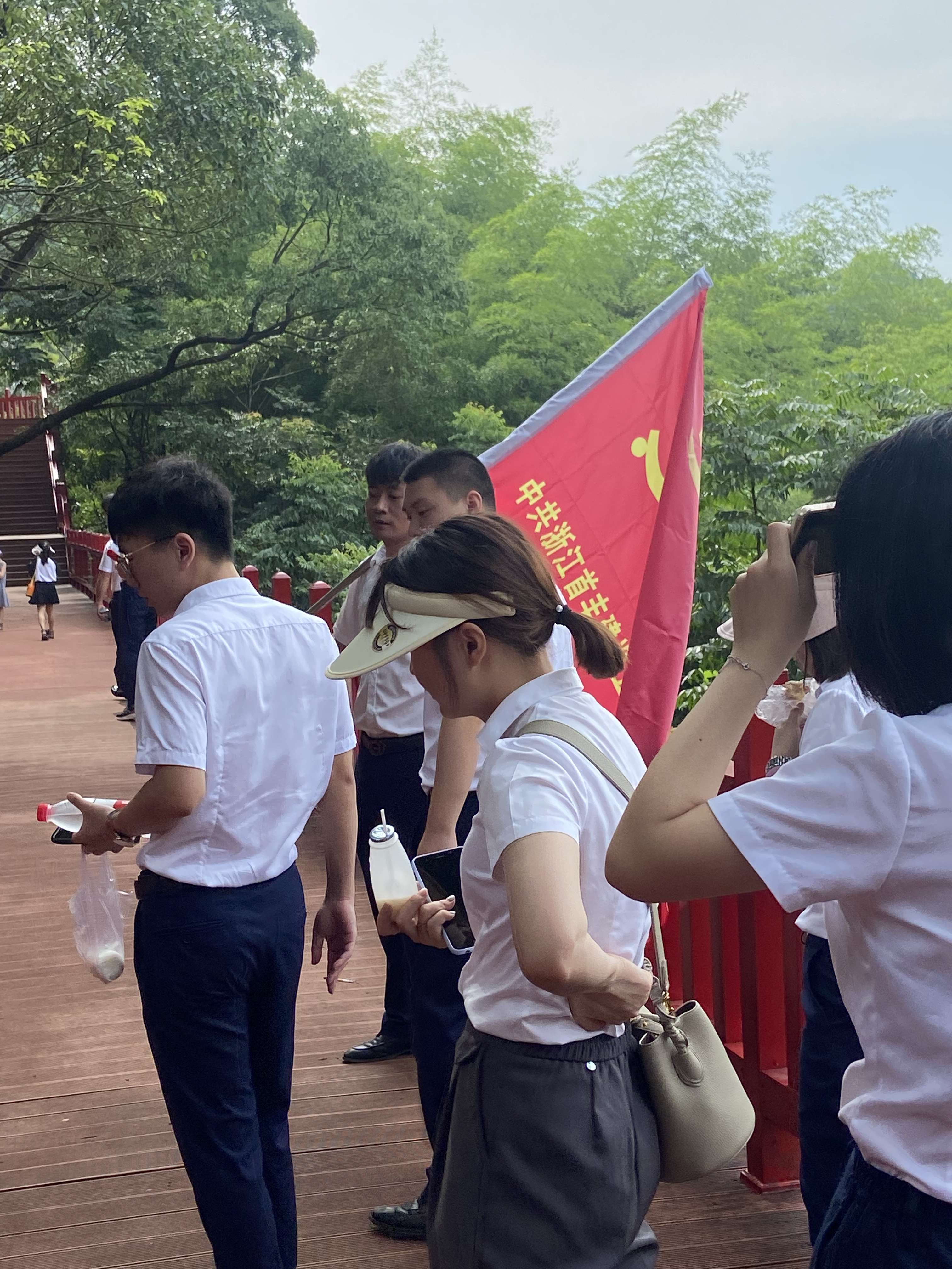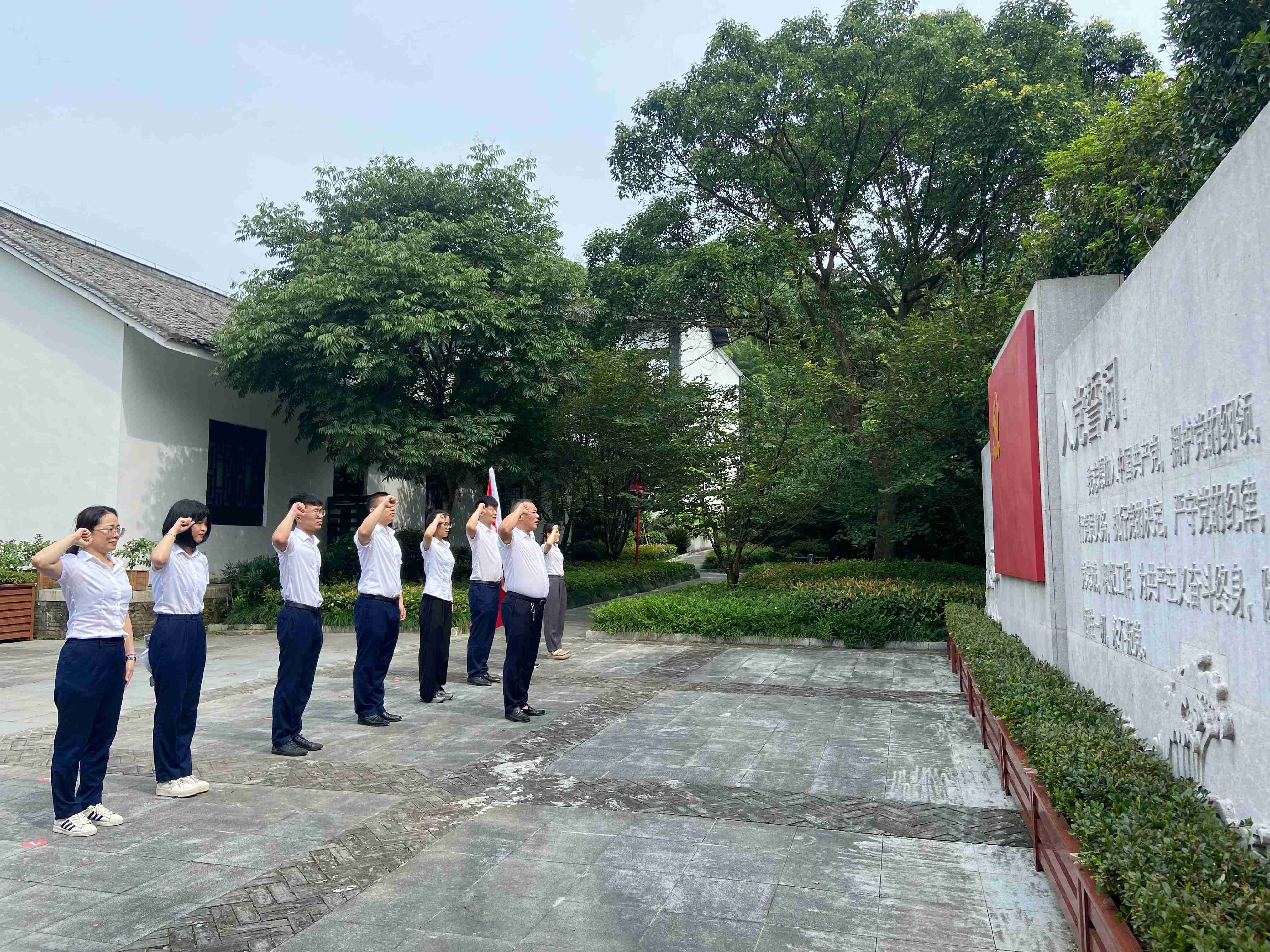 夏日炎炎,阳光依媚。大家首先来到了中共浙江省第一次代表大会会址。在讲解员带领下走进陈列馆内“迎面走来”的是一组26位党代表弧形浮雕。细致讲解下让大家重温了那段艰辛困苦却光辉璀璨、热血激昂的岁月,陈列馆里革命英雄的塑像昂首挺胸、高风峻节的形象,仿佛又让我们感受到当年的革命先烈浴而奋战、前仆后继、以牺牲小我换取大我的无畏革命精神。随后,公司党支部在会址前重温了入党誓词并集体合影留念。
